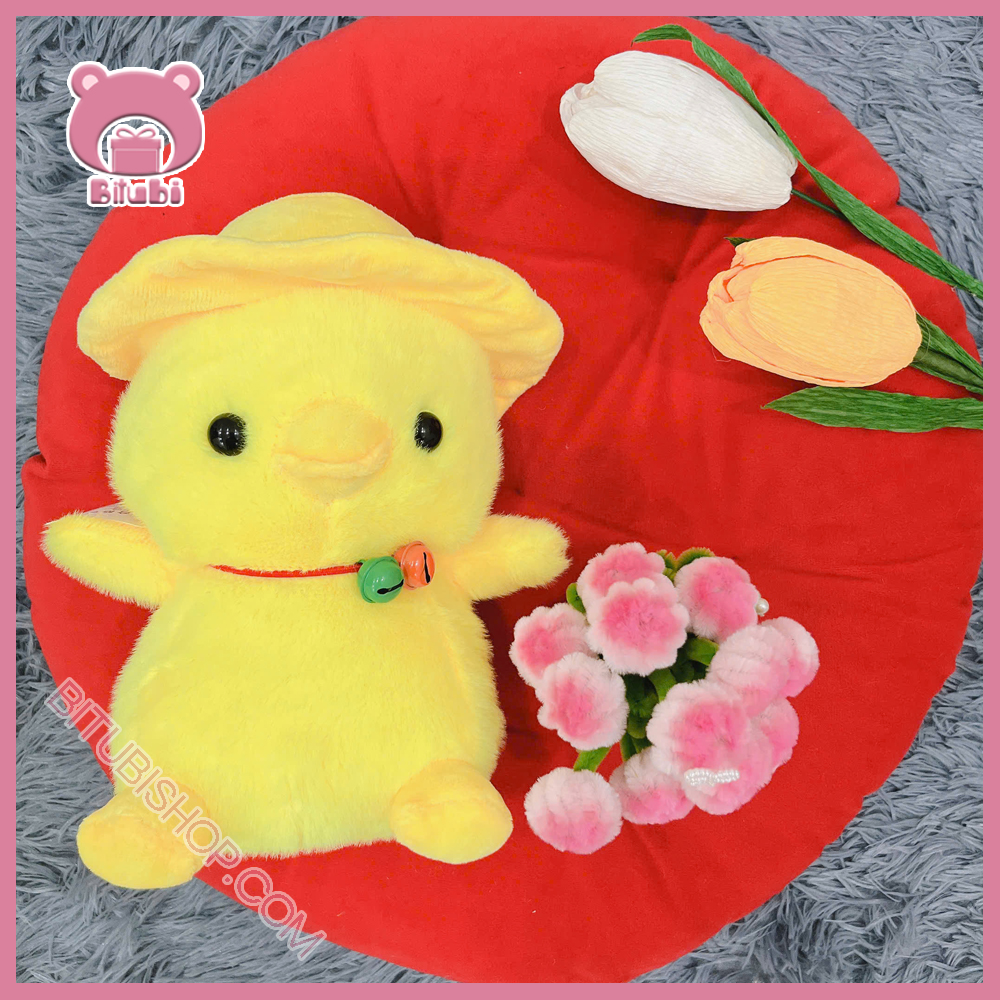 1. Thông tin sản phẩm Gấu bông con vật đội mũ vàng nơ, đeo chuông M28